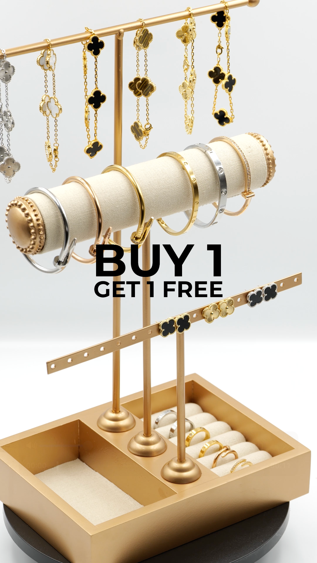 Our pieces are crafted from high-quality stainless steel and premium materials, ensuring durability and timeless elegance. They are coated with 18-karat gold using advanced PVD (Physical Vapor Deposition) technology. This process creates an exceptionally thick, eco-friendly, and long-lasting gold layer.